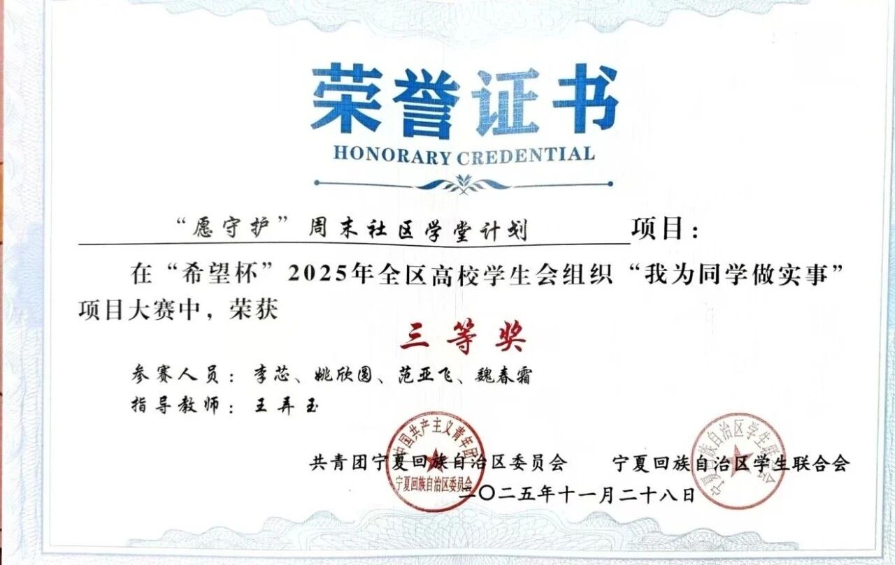 打造多元化实践育人舞台,成功举办学生干部培训班、青马班,培育492名优秀学生干部,发展122名新团员,全面提升学生自我管理与服务能力。“我为同学做实事”服务项目落地生根、成效显著,其中“愿守护”周末学堂计划获全区项目大赛三等奖,用实际行动彰显书院社会服务担当。在书院学生会组织改革评价中我院学生会、研究生会均获优秀等次,青春力量在服务他人、奉献社会的实践中锤炼成长,绽放光彩。