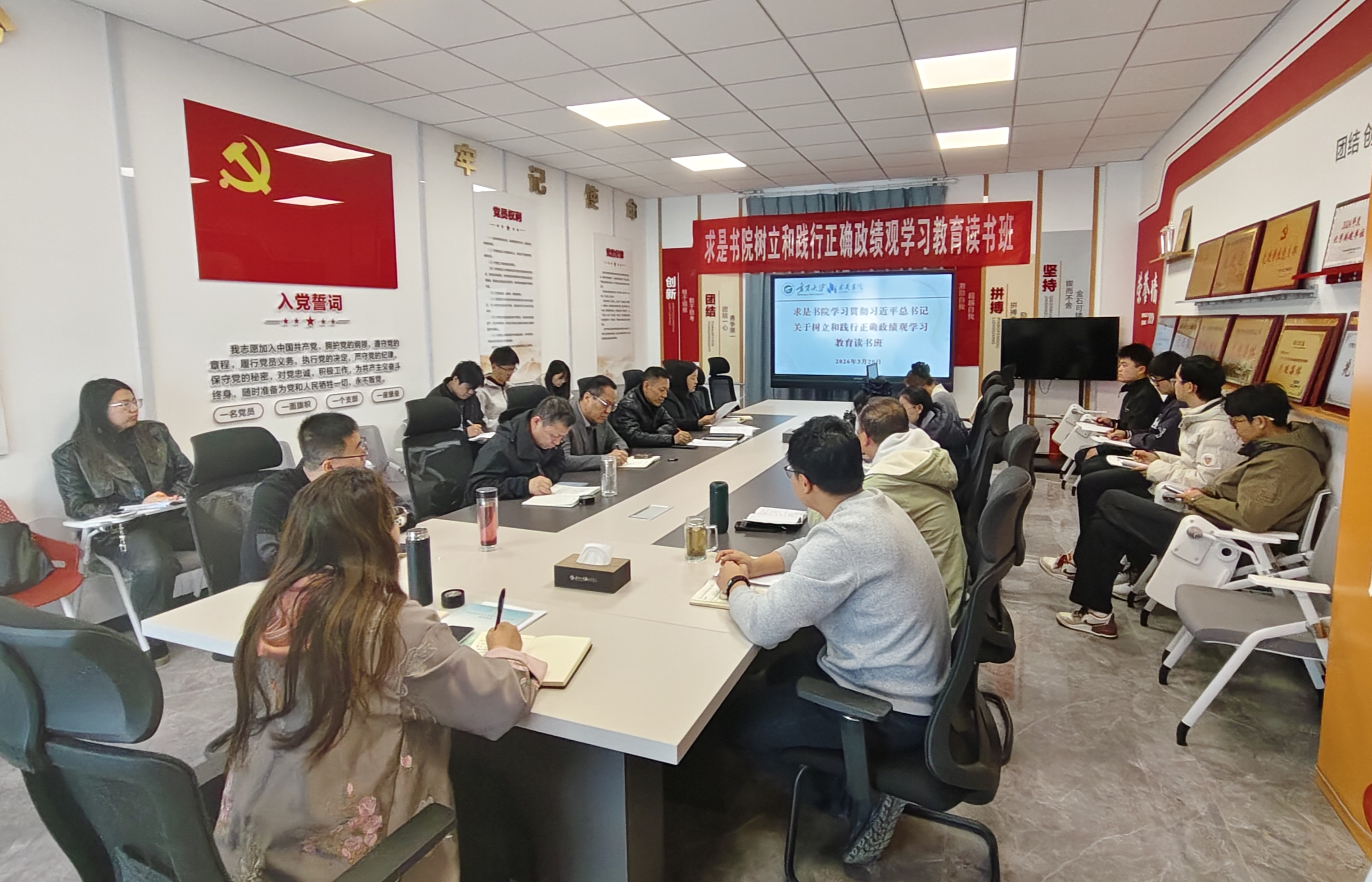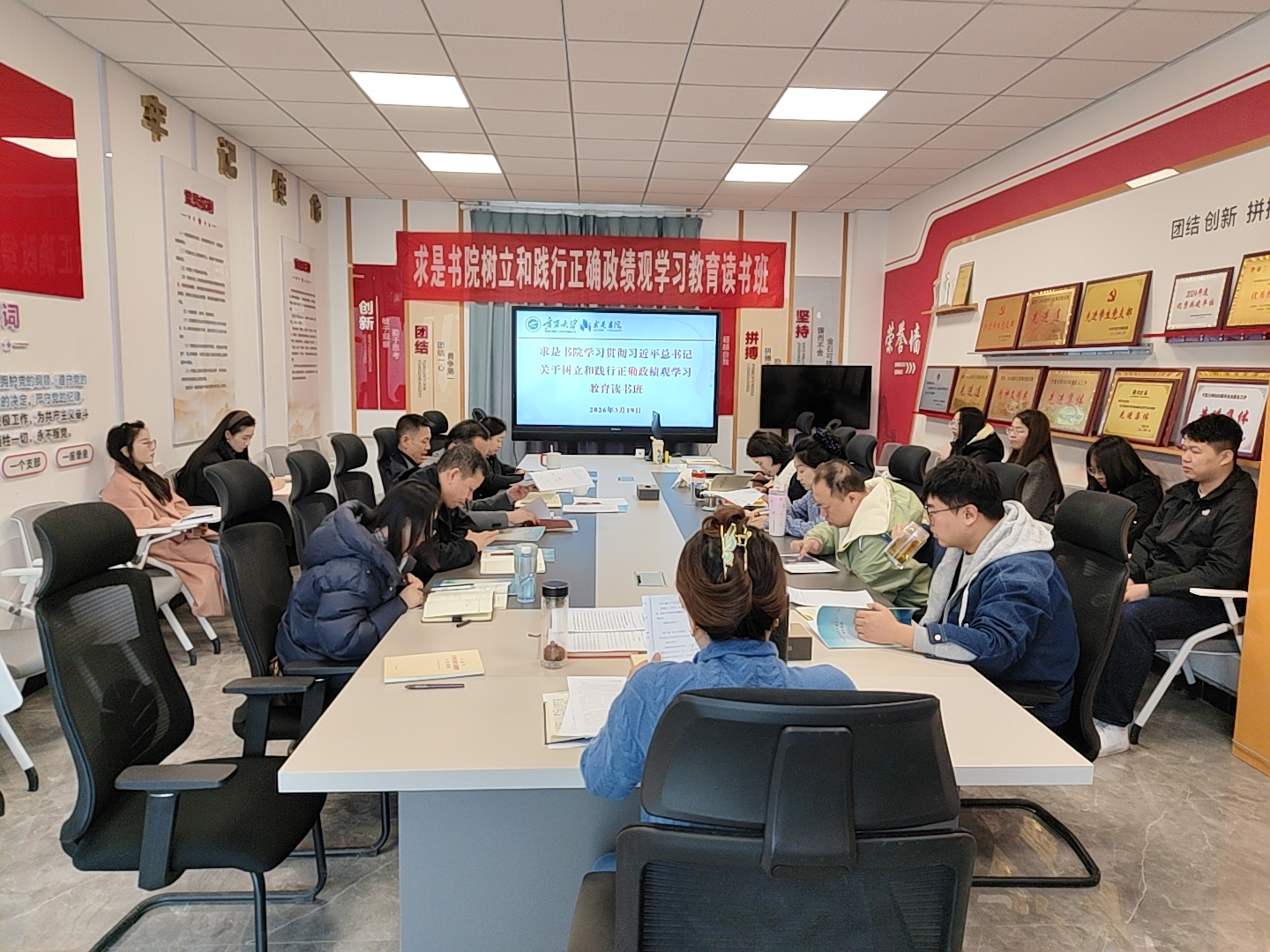 为深入学习贯彻习近平总书记关于树立和践行正确政绩观的重要论述,筑牢党员干部思想根基,3月19日至20日,求是书院党委在一楼会议室举办树立和践行正确政绩观学习教育读书班。书院党委书记武林波主持开班并全程统筹学习,书院领导班子成员、各党支部书记及委员参加学习。