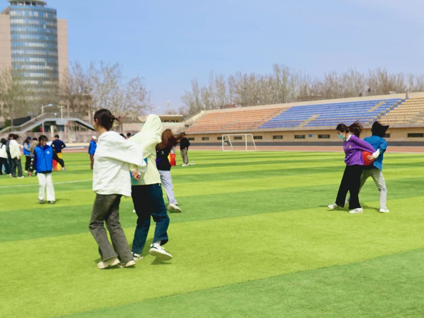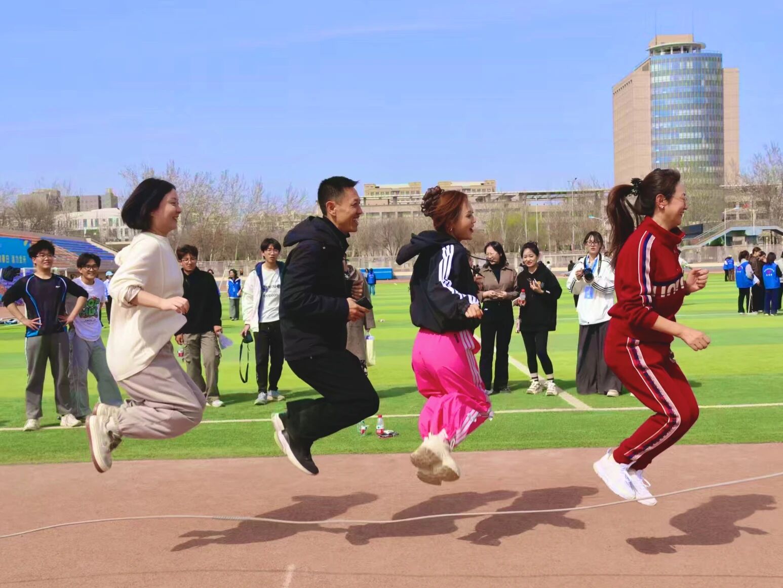 开幕式结束后,师生趣味运动会随即展开。活动设置了“跳大绳”“抖甩乒乓球”“袋鼠跳”“滚铁圈接力”等八个趣味项目。师生同场竞技、默契配合,赛场加油声、欢笑声此起彼伏,充分展现了团结协作、昂扬向上的精神风貌。