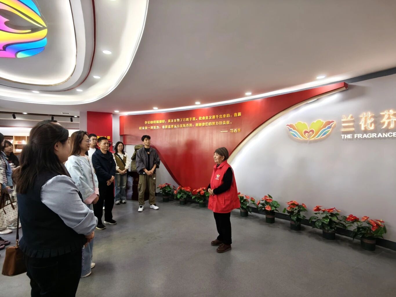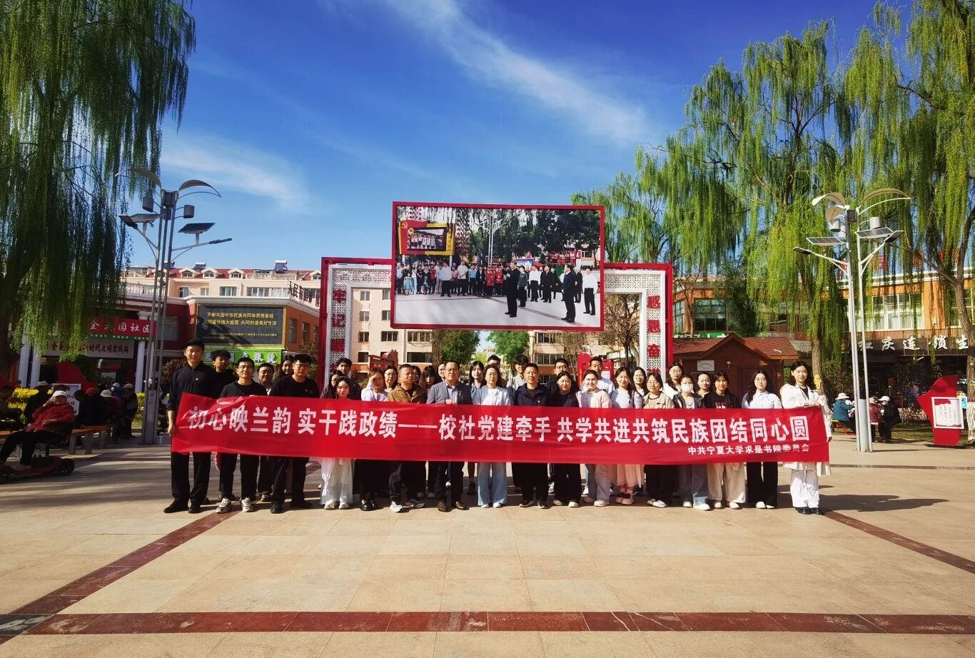 为深入学习贯彻习近平总书记关于树立和践行正确政绩观的重要论述,扎实推进铸牢中华民族共同体意识教育,推动党建引领与志愿服务深度融合,4月10日下午,求是书院党委走进吴忠市利通区金花园社区、兰花芬芳志愿服务中心,开展“校社党建牵手,共学共进共筑民族团结同心圆”主题党日暨党委理论学习中心组(扩大)“行走的思政课”活动。书院领导班子、师生党员代表共同参与,在实地观摩、现场聆听、沉浸式感悟中锤炼党性、凝聚共识、践行初心。