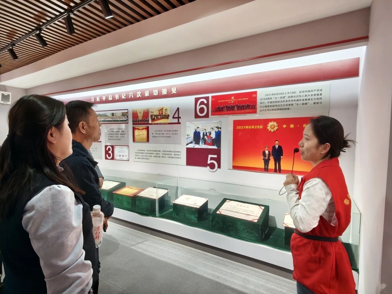 循着习近平总书记考察足迹,党员们通过珍贵实物、历史图片与典型事迹,沉浸式学习志愿服务扎根基层、帮扶群众、凝聚民族共识的奋斗历程,深刻感受各族群众像石榴籽一样紧紧抱在一起的生动局面,进一步领会铸牢中华民族共同体意识的时代内涵。