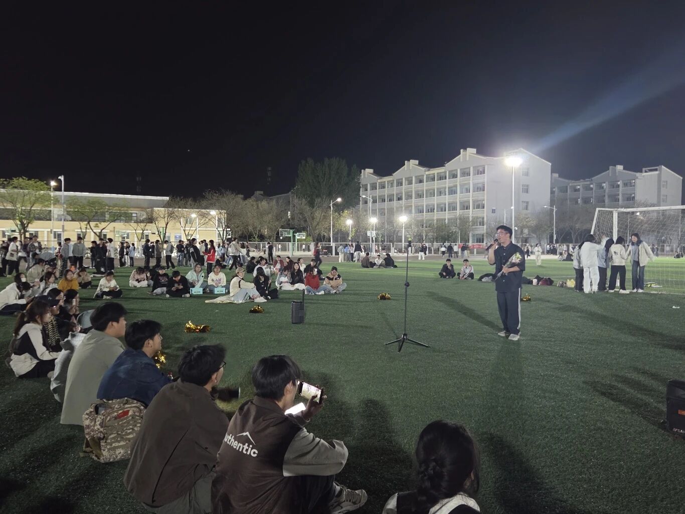 4 月 16 日晚,“晚风遇歌,青春同唱” 草地音乐会在文萃校区操场温情落幕。星空为幕,草地为席,各专业同学轮番登台,流行、抒情等曲风交织碰撞,深情与活力兼具。现场观众主动参与、热情互动,全场大合唱将氛围推向高潮,用旋律书写宁大学子的青春风采,传递向上向善的美育理念。