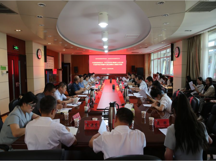 参观结束后,双方在二楼会议室集中学习了习近平总书记考察宁夏重要讲话精神。三个党支部(党总支)分别介绍了各自党建情况和党建引领业务情况,并围绕共促科普事业高质量发展进行了交流研讨。